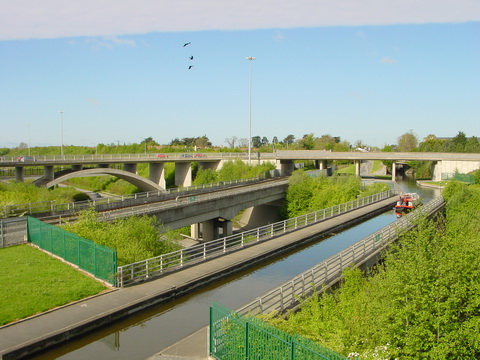The hotel is in a wonderful location, off a quiet road but close to the railway, the M50 motorway and the Wonderful O of the junction with the Royal Canal crossing in the middle.