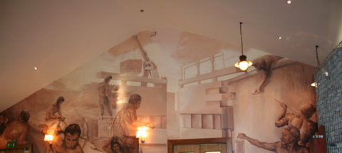 I stayed in the hotel once; it was fine. I’ve been in the bar a few times, and noted three things. The first was a range of beers that was wider and better than most Irish pubs serve (which is admittedly not saying much). The second was that the bar food was tasty and served in generous quantities. The third was the mural (I’ve cropped the lower part of the photo to omit the customers) of chaps building the canal.