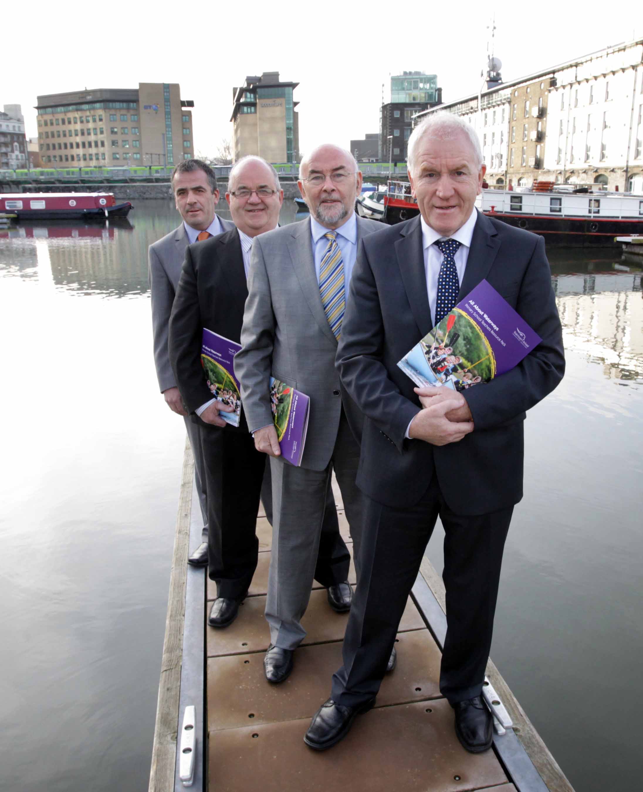 NO REPRO FEE 29/11/2012 Waterways Ireland Education Prgoramme Lauch. Pictured, from right, Minister for Arts, Heritage and the Gaeltacht, Jimmy Deenihan TD, Minister for Education and Skills, Ruairi Quinn TD, John Martin, Chief Executive of Waterways Ireland, and Eanna Rowe, Head of Marketing Waterways Ireland, at launch of Waterways Ireland Education Prgoramme today in the Waterways Ireland Visitor Centre, Grand Canal Quay, Dublin. Photo: Mark Stedman/Photocall Ireland