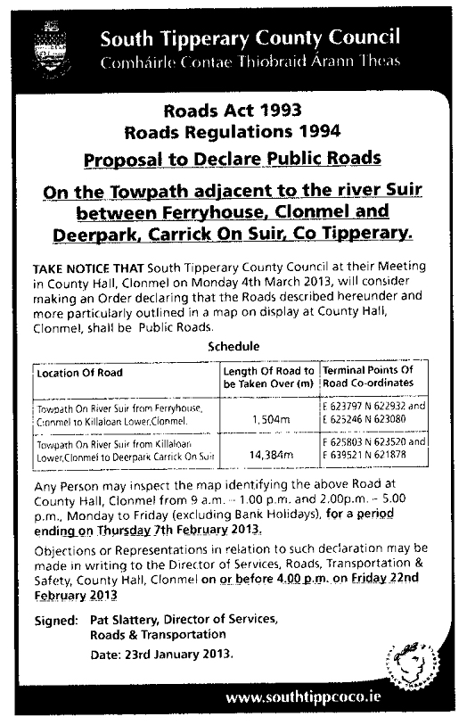 This is great news Brian: Jill and I walked the Suir’s towpath, including the contentious lengths, with a group of Carrick on Suir and Clonmel residents in August 2011 in order to publicise the ‘enclosure’ of public space by a few landowners.