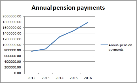 Source: Waterways Ireland figures for total pension pay-outs less lump sums
