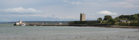 Carrigaholt Castle, a high square tower on the point, and the chapel, a cruciform building, with its belfry, are very conspicuous objects.