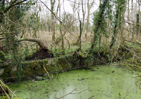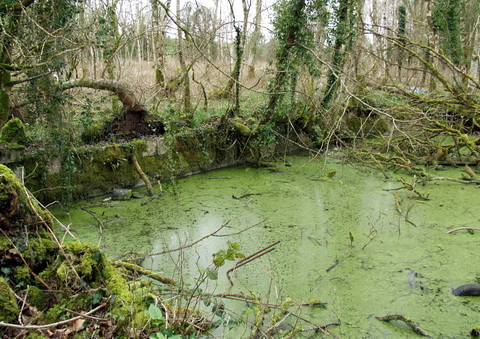 There are several short canals, but that with the lock is east of the house. Of the turf canals so far [April 2012] covered on this website, that canal is the only one with a lock.