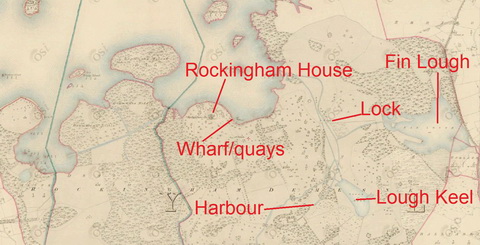 I was born and reared beside Lough Keel ( my father was the herd for Rockingham ) and that canal was used to bring mostly hay to and from the Farm Yard and fields , on barges using barge poles ; the Farm Yard and workers buildings ( beside the current Scouting Den ) at the harbour are now mostly demolished .