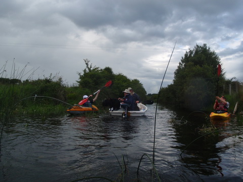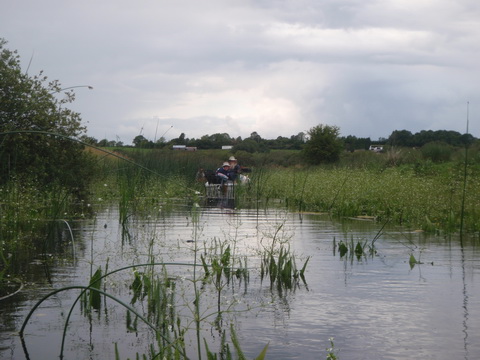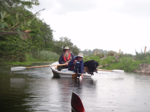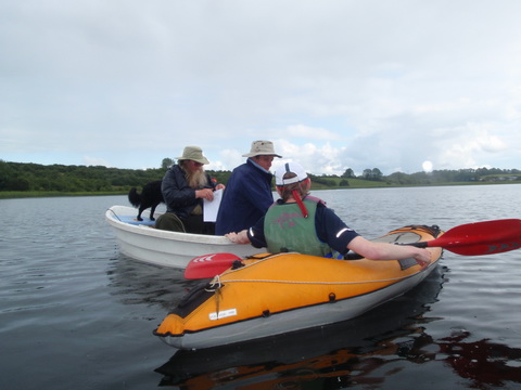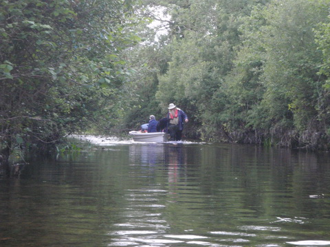 It took a couple of trips to get everything to the bridge, and it was mid-afternoon by the time all the boats, equipment and crew had been assembled, so we decided that there was not enough time to explore upstream to Lough Nahincha. We would simply go downstream, via Clooncraff Lough and Lough Nablahy and thence via the Grange River to return to our boat at Grange. We knew another party had gone upriver from Grange in 2009, and had lived to tell the tale, but we didn’t know how far up they had gone. We were therefore reasonably, but not entirely, confident that we would be able to get from the bridge to Grange by boat.