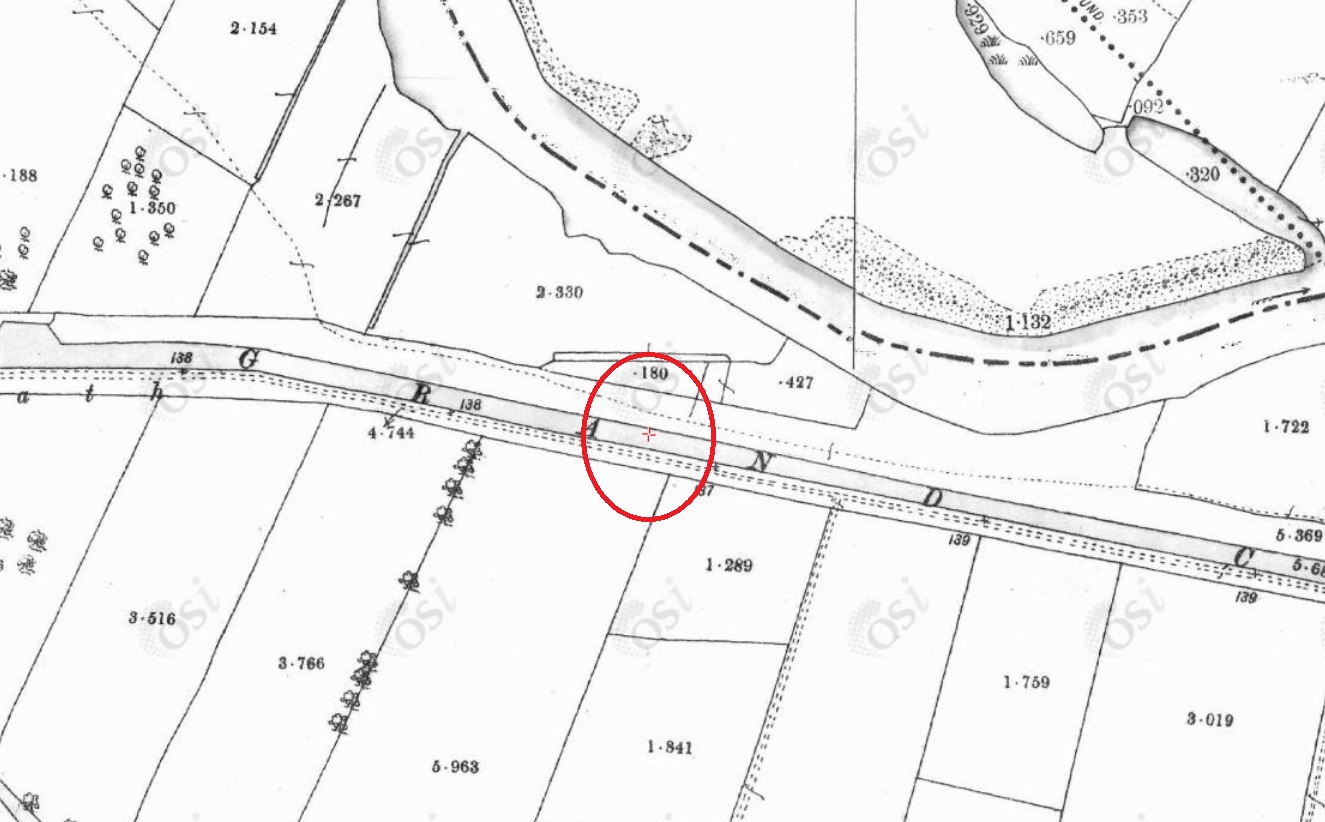 Neither the OSI Historic 6″ map [~1840] nor the 25″ [~1900] version shows a footbridge across the canal near Ballinasloe, yet there was one — which has outlasted the canal.