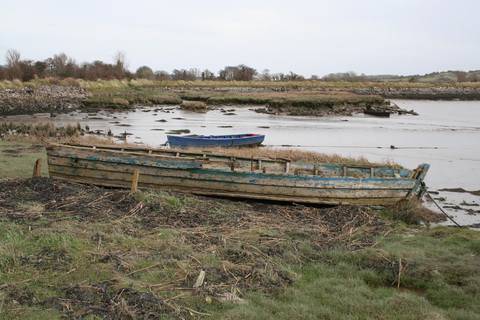 Darina Tully identifies several different types of gandelows, the flat-bottomed boats of the upper Shannon, the Fergus and the Cashen estuaries. I think the two boats here are of the Fergus gandelow type (which is different from that used at Clarecastle) but I am open to correction.