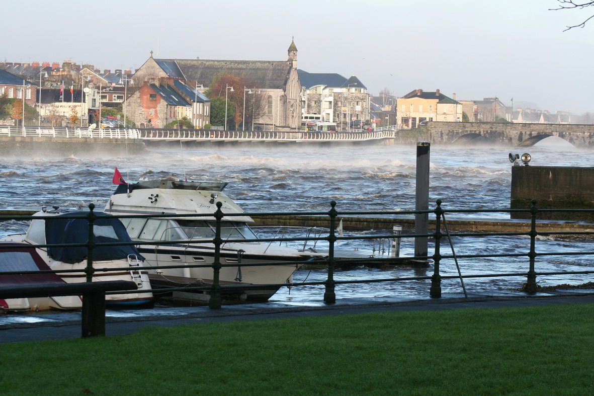 Note February 2014: if you came to this page while looking for photos of the current flooding in Limerick, note that the 2009 floods were caused by large amounts of water coming down the Shannon from the midlands (and indeed all the way to Lough Allen); the 2014 floods seem to have been caused by water coming up the estuary with high tide.