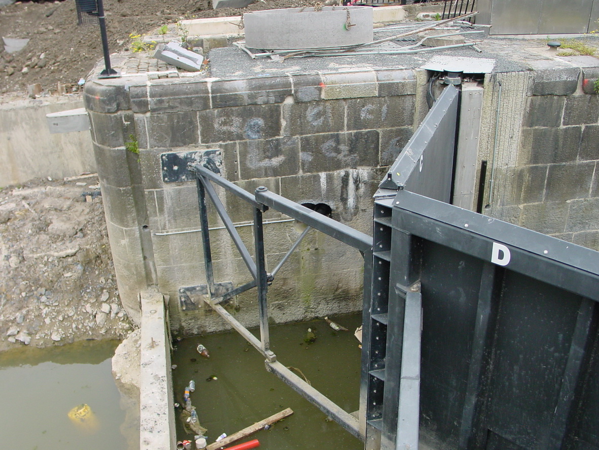 Were the old lock gates removed at the same time? Gates were to be reinstalled at that lock, but I understand that the dredging of the upper section of the canal was inadequate: perhaps not deep enough to allow lock gates to open properly.