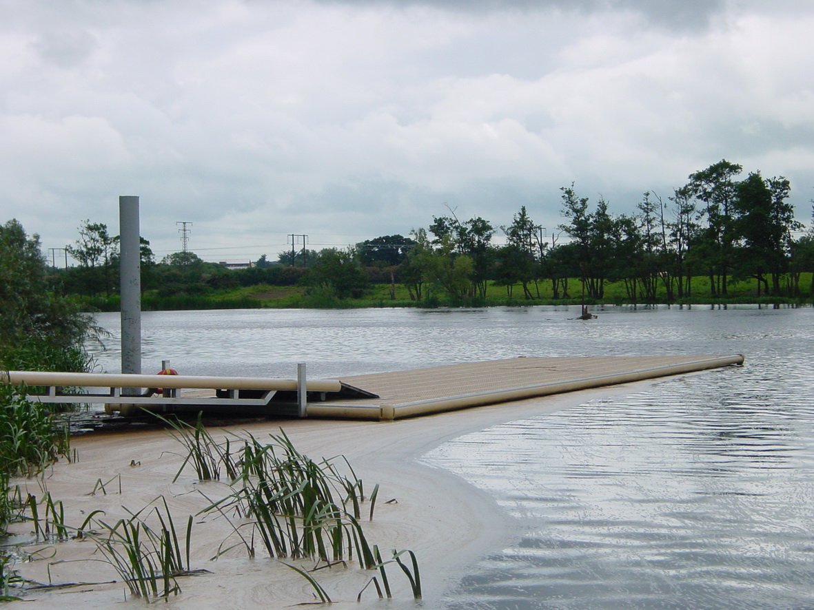 Further down the towing-path, on the east (or, if you insist, south) bank, the university has built new premises for its rowing club. The building need not concern us, but some of the waterside facilities help to show the change in water level.