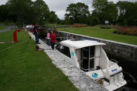 Some years ago, when we had an elderly cruiser on the Shannon, we arrived below Tarmonbarry at lunchtime, when locks are closed. At the time, Tarmonbarry Lock was closed for repairs and traffic was being diverted through the (much smaller) Clondra Lock and the Camlin River, rejoining the main line of the Shannon just below Lough Forbes.