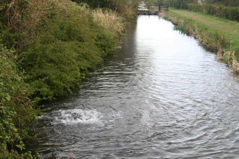 I don’t know what the upwelling is. Two possibilities strike me. One is that some or all of the water is pumped or pipeds to the feeder from far out in the lake rather than flowing in to the intake above the sluice house. The other is that water from Cullion fishfarm, which is said to be recirculated into the system, is pumped into the feeder at this point. I hope that somebody will be able to tell me what the true explanation is. In the meantime, if the googlegods are smiling upon us, you will be able to see below an aerial photograph of what I presume to be the fishfarm, which is close to the feeder about one third of the way from the lake to Mullingar.