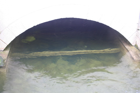 I was there today at the feeder outlet and took some photos. The sluice house is all boarded up, there was no upswelling of water as in your photos. The water was very clear, no foaming.