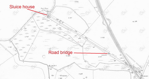 Heading back towards Mullingar, here (from downstream) is the bridge marked “Road bridge” on the two OSI maps of the sluice house above.