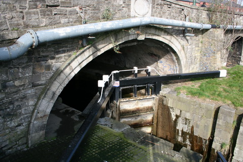 Lock 1 is just above Newcomen Bridge, but let’s start on the downhill side of the bridge. Just below it is a railway bridge: a very low-level railway bridge. The current bridge lifts straight up, with a jack at each corner; L T C Rolt described its predecessor, near which he slept on his Royal Canal trip:
