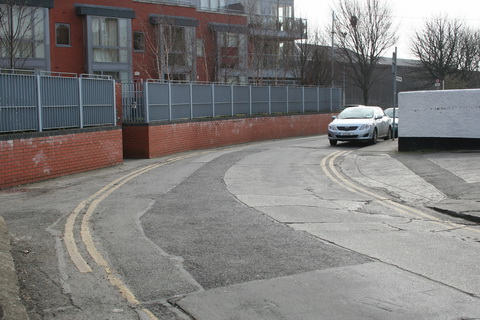 On we go. The block of flats on the left is Dakota Court, built on the site of the Dakota printing works, itself built on a filled-in dry dock.