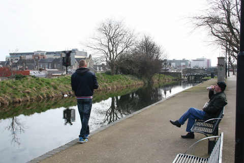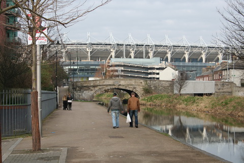 You may be wondering what this has to do with the Royal Canal. The point is that road bowling is rarely played in Dublin and the wall of Mountjoy Prison is not the local equivalent of the Chetwynd Viaduct. So if you see folk trying to throw stuff over the wall, it’s not a quaint Irish sport and I wouldn’t stop to take photos: it might be people attempting to supply their friends on the inside with illicit substances. A net has been put over the yard recently, so this activity may have ceased but, if you do see it, “Watch the wall, my darling, while the gentlemen go by.” That said, I should add that I have never experienced anything even faintly threatening anywhere along the route described here, although I’ve never been there by night.