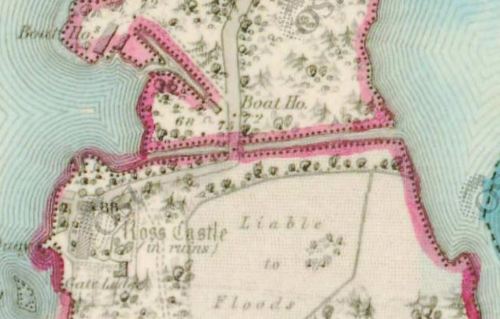 On approaching the lake in the vicinity of Ross-castle some disappointment is at first generally experienced from the flatness and marshy quality of the shore. The latter part of the road is a causeway, which crosses the morass or bog near the castle, and is reduced to a narrow isthmus by inlets of the lake on each side.