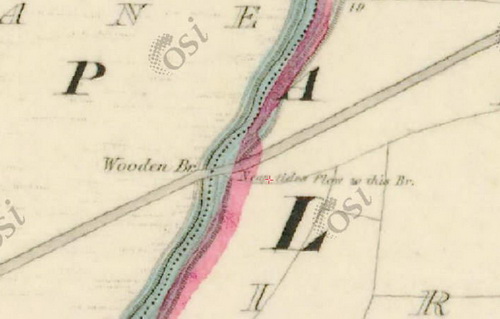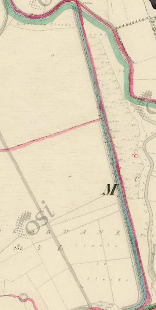 The northernmost canal, the one at the top of the previous map, is the furthest downstream. It cuts off the winding “Old Course of River”.