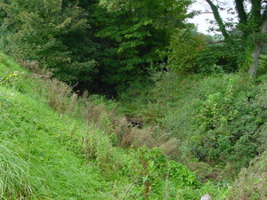just to add, at the western end, the canal turned a pronounced right angled turn to join the river, I imagine that the lock would have been on this stretch or possibly close to it on the line proper.There is some evidence of a channel further west which might be an unfinished section perhaps, which runs to and perhaps under the road that heads for Cecilstown. I’m not sure what plans there were to extend or whether the canal would use the river furtheron, as the river runs very close to the escarpment in places. I imagine a new channel for the river might have been possible.