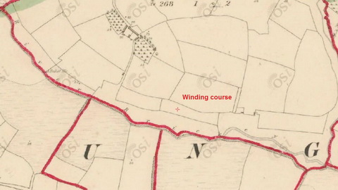 It is clear that the lower, tidal reaches of the Brickey were used by boats: apart from Samuel Lewis’s statement, we have the fact that the 25″ Ordnance Survey map of ~1900 shows two quays at Killongford. Boats might very well have been hauled further up the river, either before or after the improvements to the channel; we know that drainage channels elsewhere, eg the Ballycuirke Canal, were used for carrying, even if there was no navigation authority and thus no record of the goods carried.