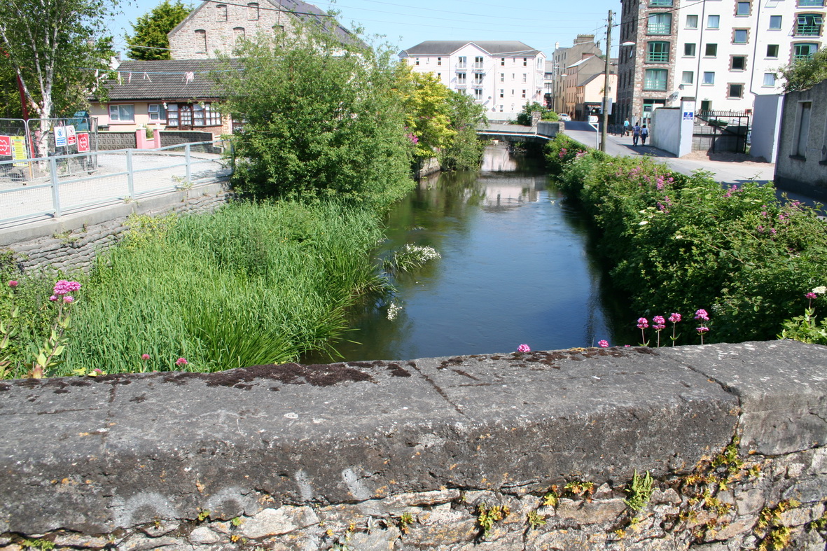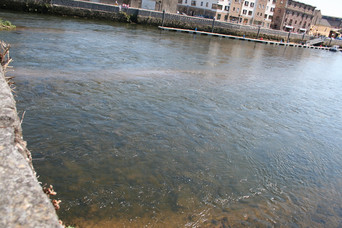 The water here is held up by a weir so that it can supply the Grubb mills on Suir Island (to the left, out of shot).