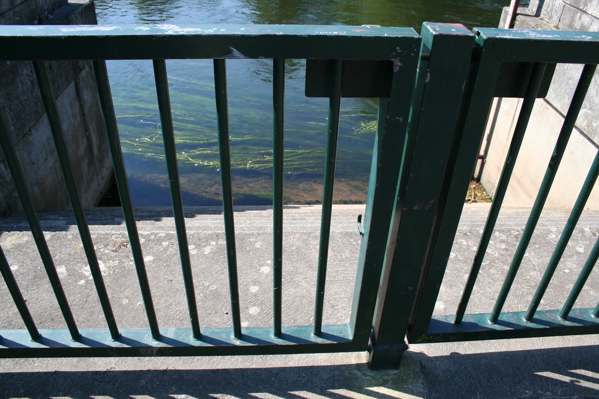 It has its own depth gauge. You can see why the citizens want flood defences. But imagine hauling a loaded boat upstream against that lot.