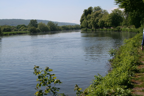 The navigation runs past its grounds; here is a photo looking upstream towards Clonmel.