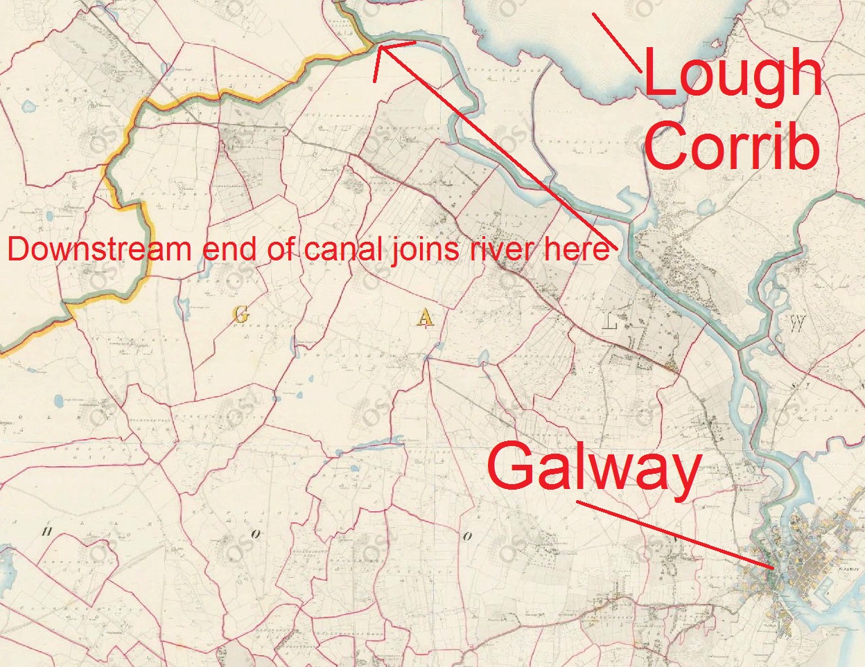 Zara Brady of IWAI Corrib Branch then very kindly took up the investigation. She asked Trevor Northage (www.anglingcharts.com) about the old navigation canal from Lough Corrib. This is what he said: