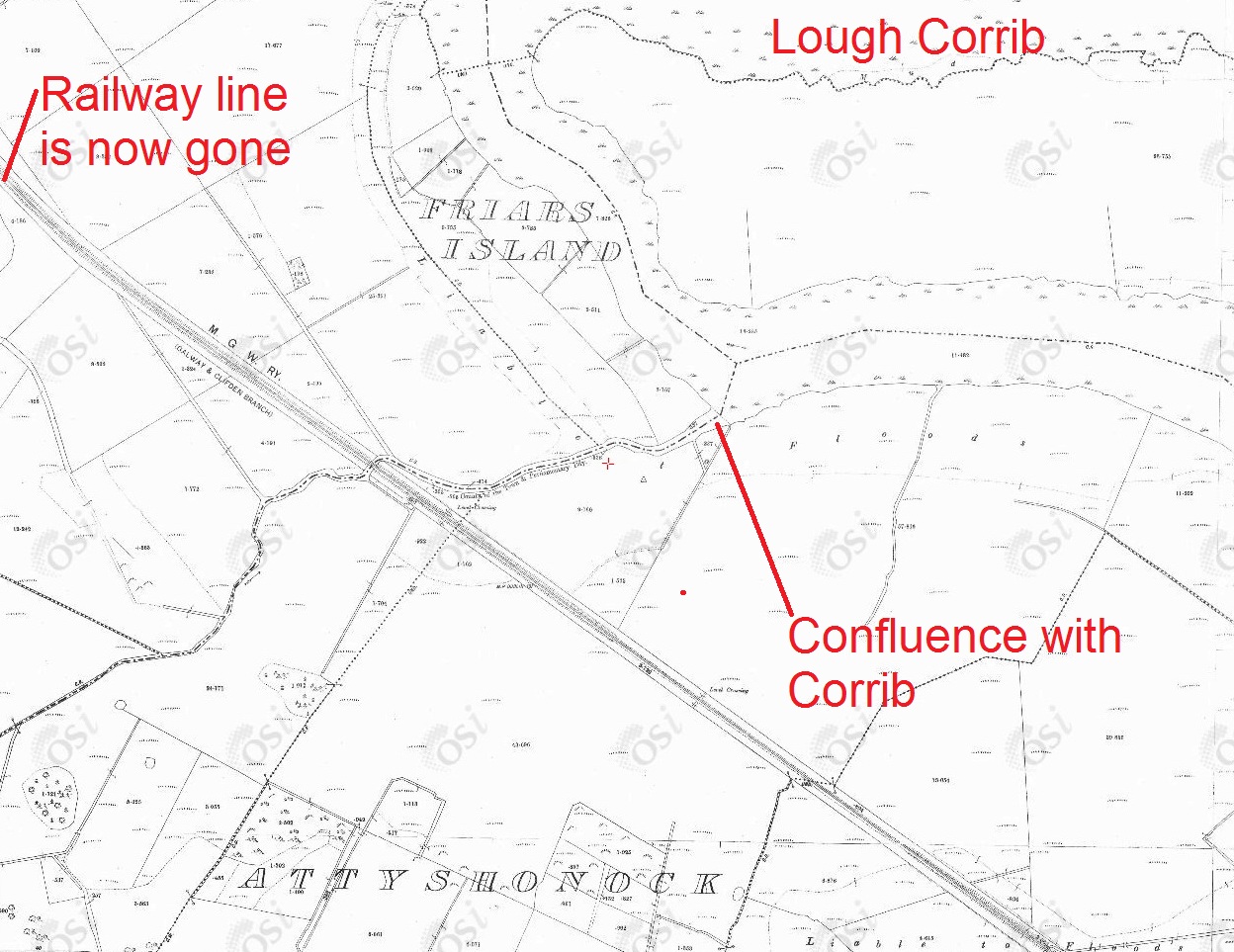 I have been up a channel from the old river in a cruiser almost up to the realigned main road but never further. Fr O’Reilly SJ who was a companion of Maurice Semple author of the series of books on the Corrib was reputed to [have] made the trip in a canoe cutting lots of farmers’ barbed wire on the way!