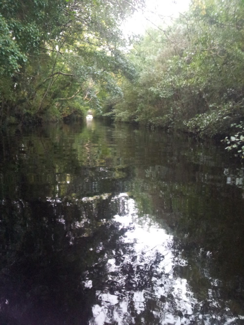 Finding and getting into the next canal is the most difficult part of this trip; it’s all plain sailing thereafter. The canal entrance is WSW (about 250° magnetic) from the road bridge behind you. However, when you cruise up and down the western shore, the vegetation appears uniformly dense and impenetrable. In fact the trees on the Northern side of the canal are significantly taller than those on the southern, but that can be hard to see.