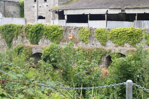I’ve marked in blue, on an extract from the ~1900 OSI map, the line of the canal and that of the overflow channel. The uppermost red circle marks a link between the two and I assume that the original weir was there. There seems to be a second connection a little further down, and I’ve marked that too in red. Finally, towards the bottom of the map, I’ve put a large red circle: at that point all of the water seems to be diverted out of the canal (which is dry below that point) into the original overflow channel. I presume that that was done when (or after) the navigation was abandoned. There might be a wall at that point to keep the canal dry: I couldn’t see properly.