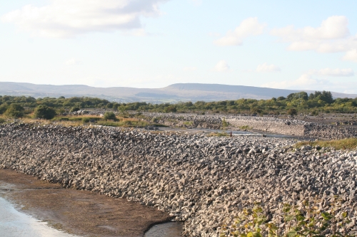 Two large embankments were planned, both to retain water in the canal and to provide a trackway or towing-path across the inner basin of Lough Mask to the mouth of the canal. The western embankment was almost completed and the eastern half done when the navigation work was abandoned but the massive stone structures have survived.