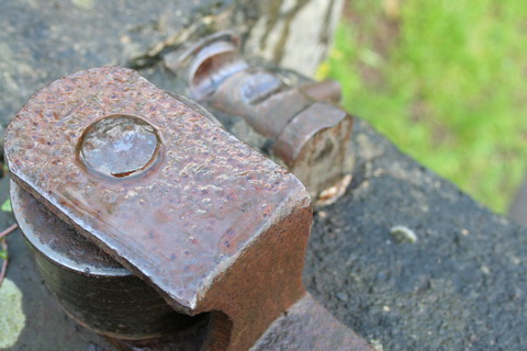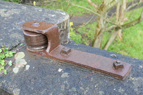 This block or pulley is mounted on the parapet of the bridge. I cannot say whether it was in the same position when the canal was in use but I have no reason to believe that it was not.