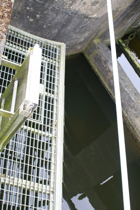 I think that water enters the lock from the sluices upstream and eastward of the upper gates; I guess that it is also controlled by the second set of gear just below the upper east gate, but I don’t know why two sets of controls would be needed.