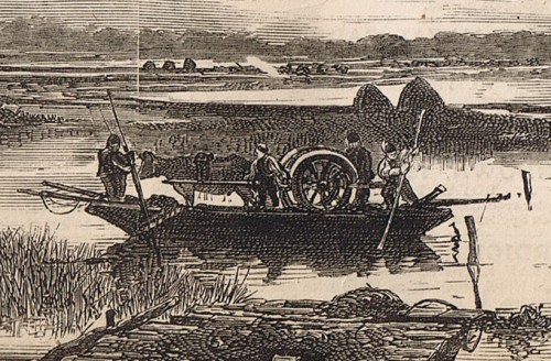 Whereas the cots used on the estuaries, often for fishing, were slim vessels, the cots of the midlands were load-carriers. Here is a drawing from The Graphic of 13 December 1879, one of three illustrating Shannon floods.