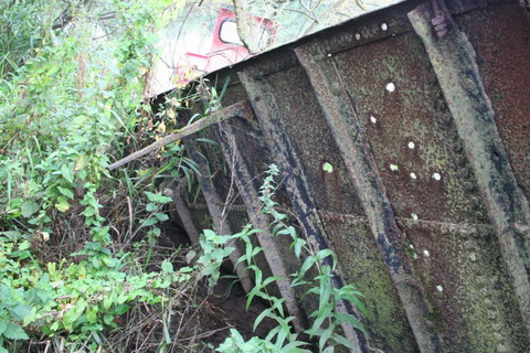 If we don’t know when the barge was abandoned, can we tell anything — from the design and structure of the barge itself — about when or where it was built? I can’t, but perhaps there is someone who can. If these photos give you any ideas about when or where this barge might have been built, do please leave a Comment below. I have higher-resolution images, which I can email to you if you want them.