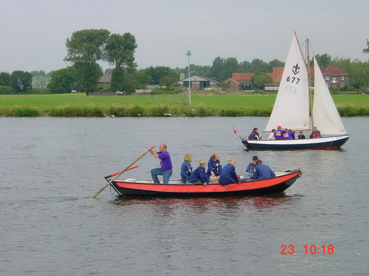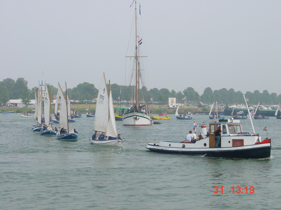 We visited the Dutch Water Scouts Nawaka festival in the Netherlands in 2002 and saw hundreds of these vlets in use. Because the photo above doesn’t really do them justice, here are some photos from Nawaka. The first one is one of the vlets run by the sailing school, so it’s kept in pristine condition. The vlets are steel, by the way.