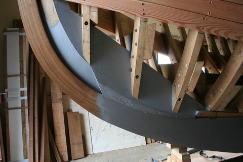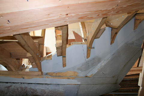With research from Críostóir MacCárthaigh, a design by Myles Stapleton and shipwright Stephen Morris on the spot, the project aims to build a 25′ gaff-rigged wooden boat. It will differ in some respects from the originals, notably in having an external keel and an engine, but it will remain open. It is being built of Portumna oak, with larch from near Belfast and green oak for deadwood.