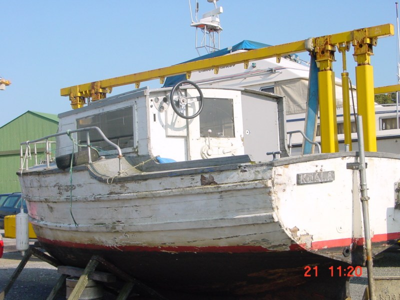 Koala at Corrib Rowing and Yacht Club. The yellow thing is a hoist, not the boat’s mast