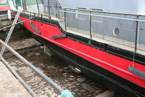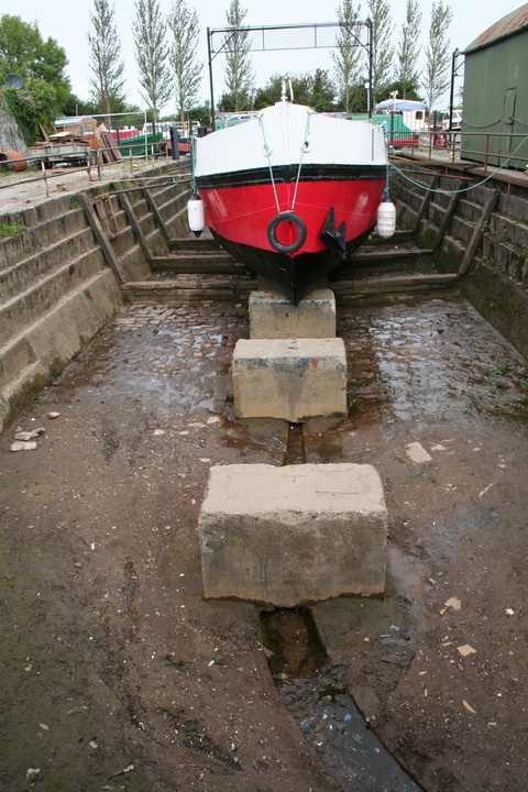 One of the dry docks is covered, and is therefore in demand for painting, but its blocks are lower than those in the open dock so it is harder to work underneath a boat.
