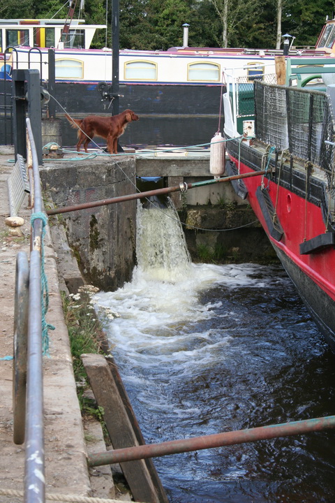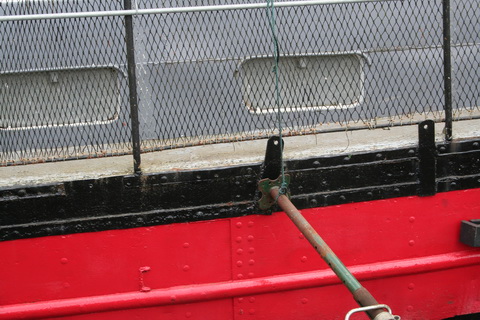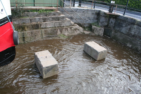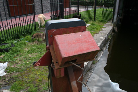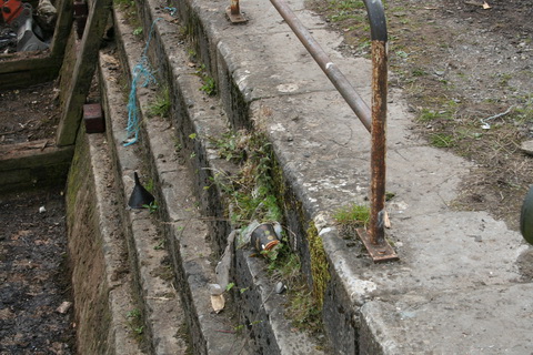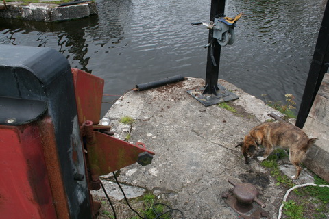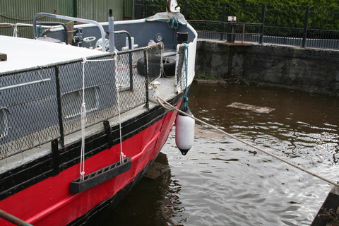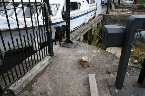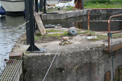It's a bit cluttered on the dock-side. Note the metal top of the gate, which daring folk have been known to walk across