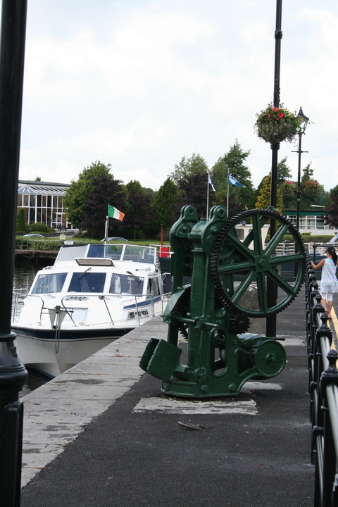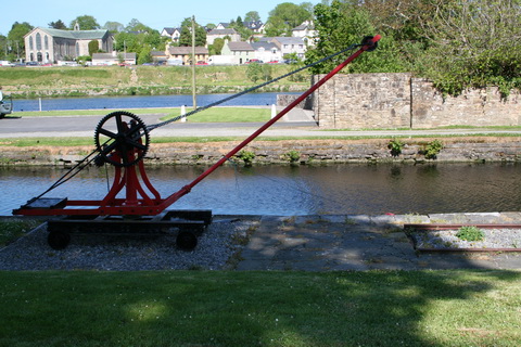 The other upstream crane I know of is at Carrick-on-Shannon (if I have missed any cranes, especially upstream, I would be glad to learn about them). The Carrick crane is above the bridge, and it lacks a jib. Unlike the other cranes, it has been painted green; it bears the number 12.
