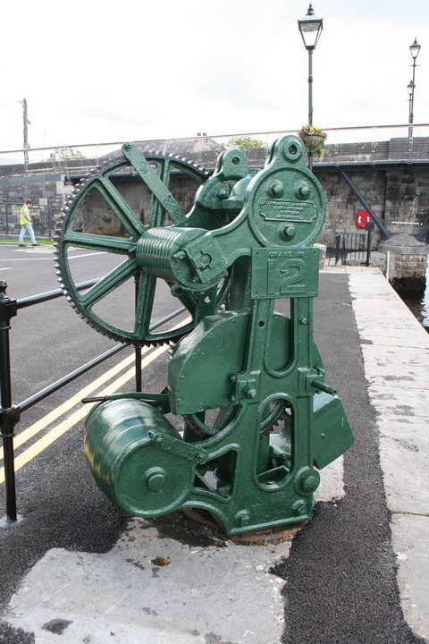 If my guess is correct, then this is an old crane. According to Wikipedia, Mather, Dixon & Company, locomotive manufacturers, were at the Bath Street Foundry from 1826 to 1839, when they moved to Bootle. In 1842, John Grantham, who had been apprenticed to the firm, became a partner; he was the author of Iron, as a Material for Ship-Building (1842), and the son of the John Grantham who brought the first steam-ship to the Shannon. The firm closed in 1843, before the Shannon Commissioners began work at Carrick.
