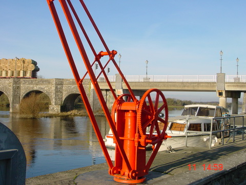 I know of only two surviving cranes further upstream than that at Banagher, and the Shannonbridge crane (of which, alas, I have no close-ups) is of a different design.