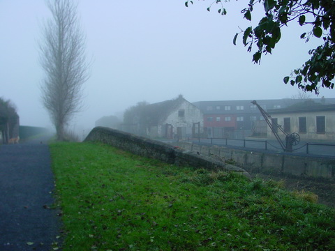 - Banagher’s crane seen from the bridge, with Haughtons Mills (later the Malt House) in the background