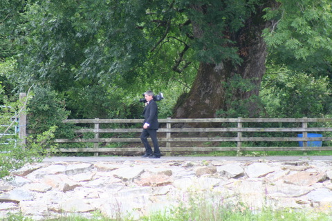 Being photographed. I presumed they had hoped to have a scenic lake background and I hoped they weren't too discommoded by the interposition of a scruffy great barge
