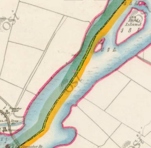 Bird’s Island, Banagher Bridge and the head of the canal (OSI 6″ map ~1830)
