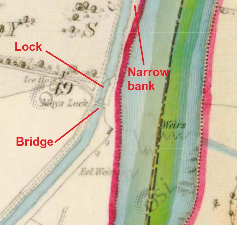 But what accommodation did the bishop need? A small strip of land downstream of the lock was insulated by the canal; perhaps the bridge provided access for cattle.