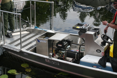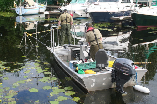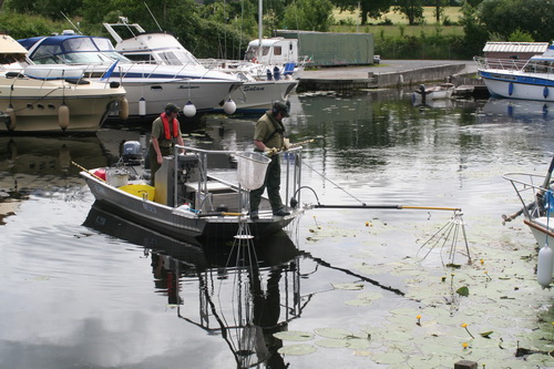 Who are these chaps? What are they doing? Why are they doing it in a marina on Lough Derg? Are they inserting large numbers of volts into the water and, if so, what effect might that have on boats? Answer on a postcard, please.